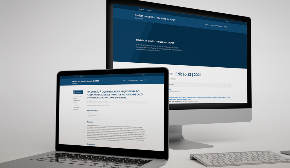A Associação Paulista de Estudos Tributários conduz publicações com trajetórias institucionais sólidas: a Revista de Direito Contábil e Fiscal (RDCF) existe desde 2019, enquanto a Revista de Direito Tributário da APET (RDTA) conta com duas décadas de circulação, tendo iniciado suas operações em 2004. Contudo, a permanência desses periódicos não significava plenitude operacional.